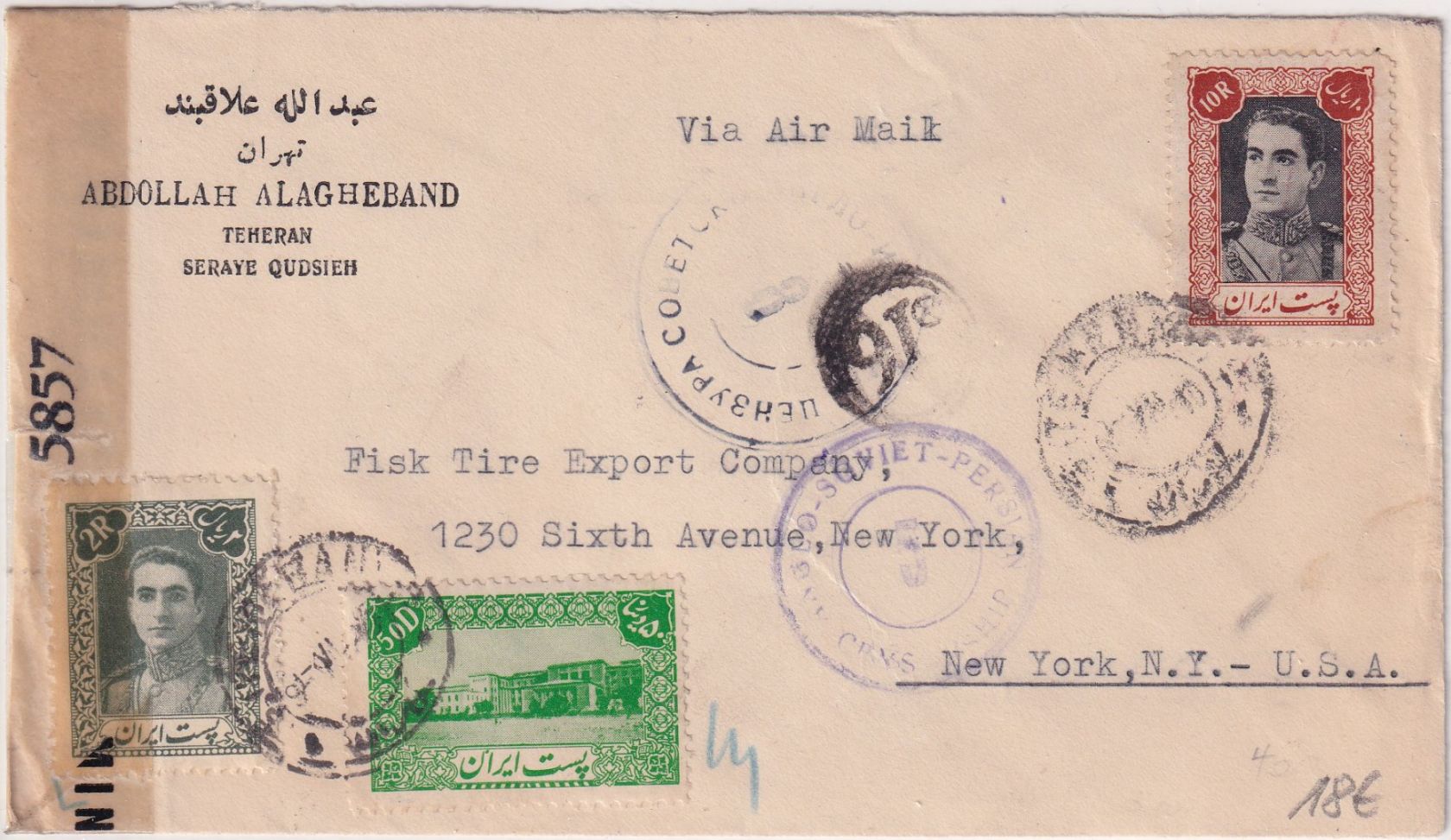 Doppelzensur: Anglo-Soviet-Persian Censorship und US-Zensur mit Verschlussstreifen - ohne Inhalt