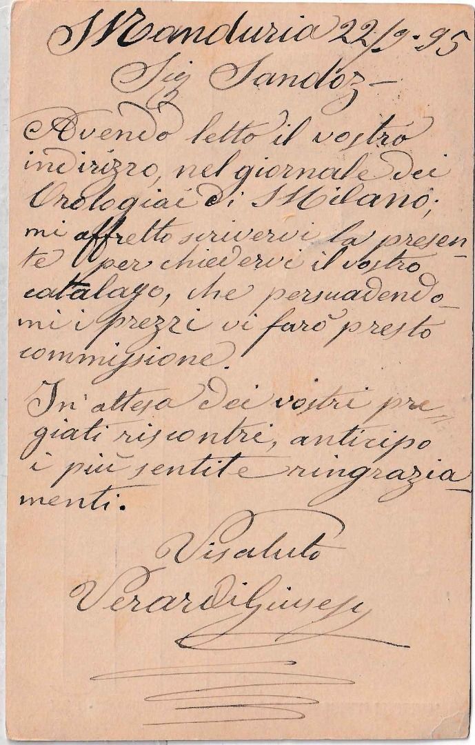 Italien - 10 C. Ganzsache+Zusatz i.d. SCHWEIZ Manduria - Chezard 1895
