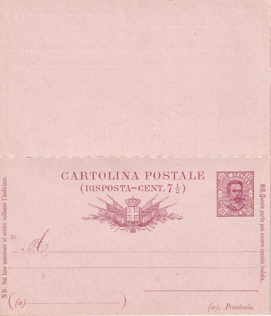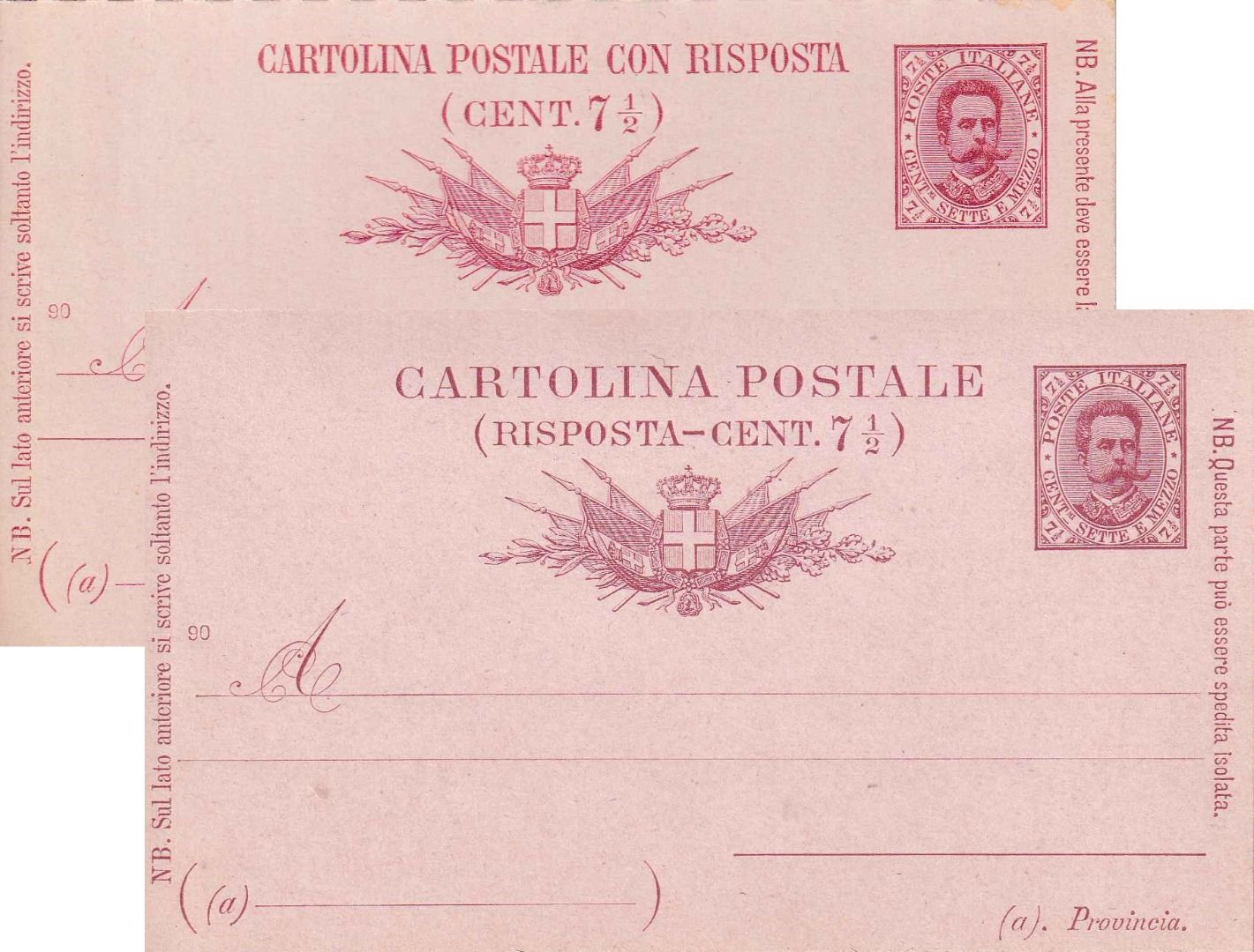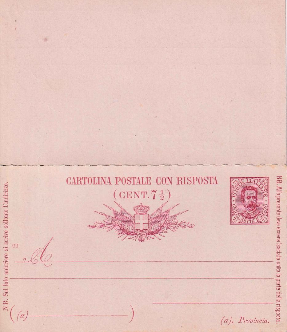 Italien - 7 1/2 C. Umberto I. Ganzsache/Doppelkarte (1890) ungebraucht