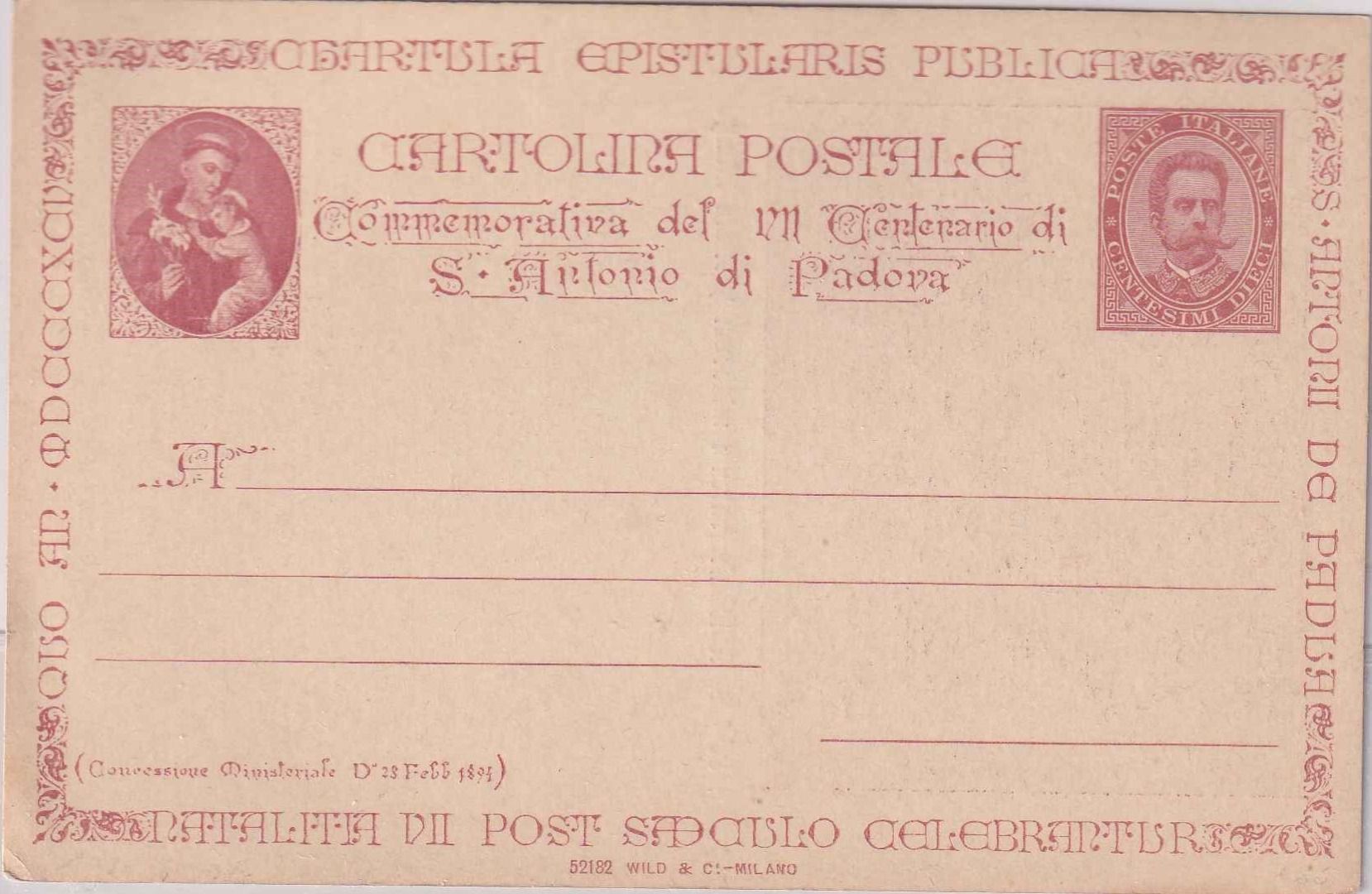 Italien - S. Antonio di Padova 1895 10 C. Privatganzsache ungebraucht Bild 3