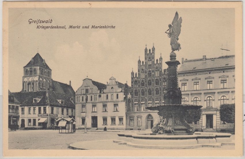 Mecklenburg-Vorpommern - Greifswald, Markt m. Kriegerdenkmal sw-AK gelaufen 1909