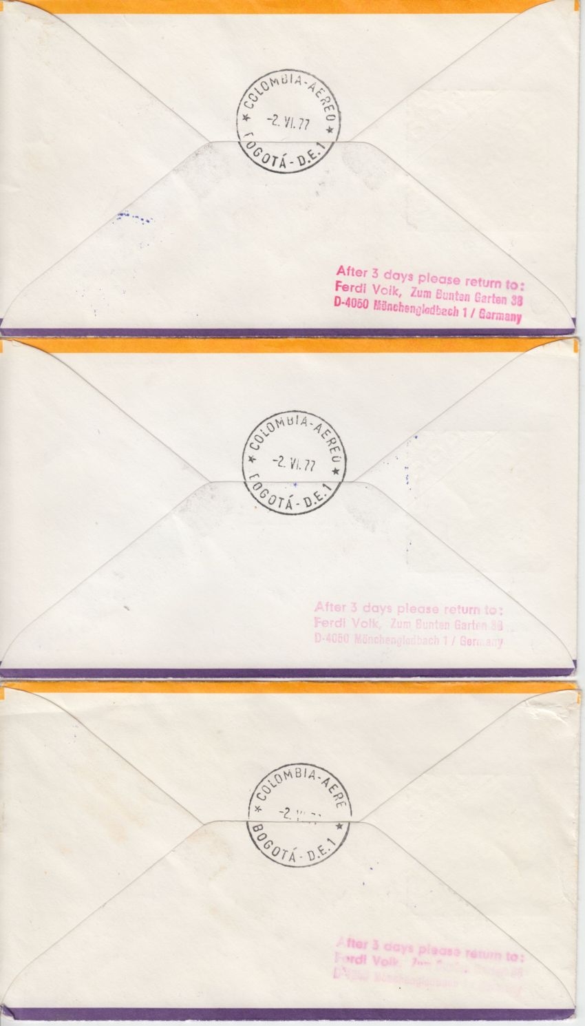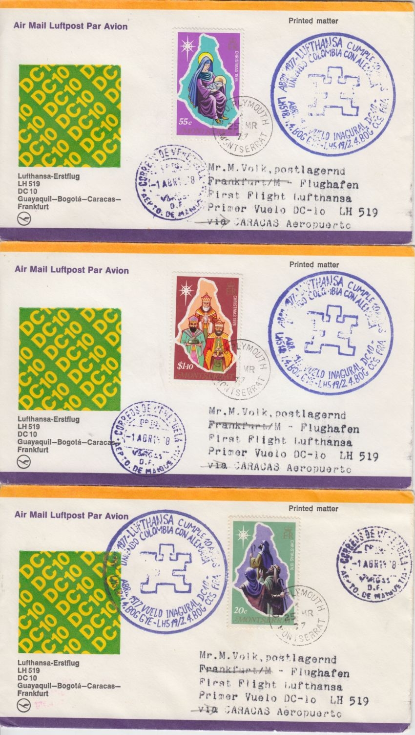 Monserrat - Weihnachten 1976 3 Werte/3 Luftpostbriefe Zuleitungspost LH-1st-Flug