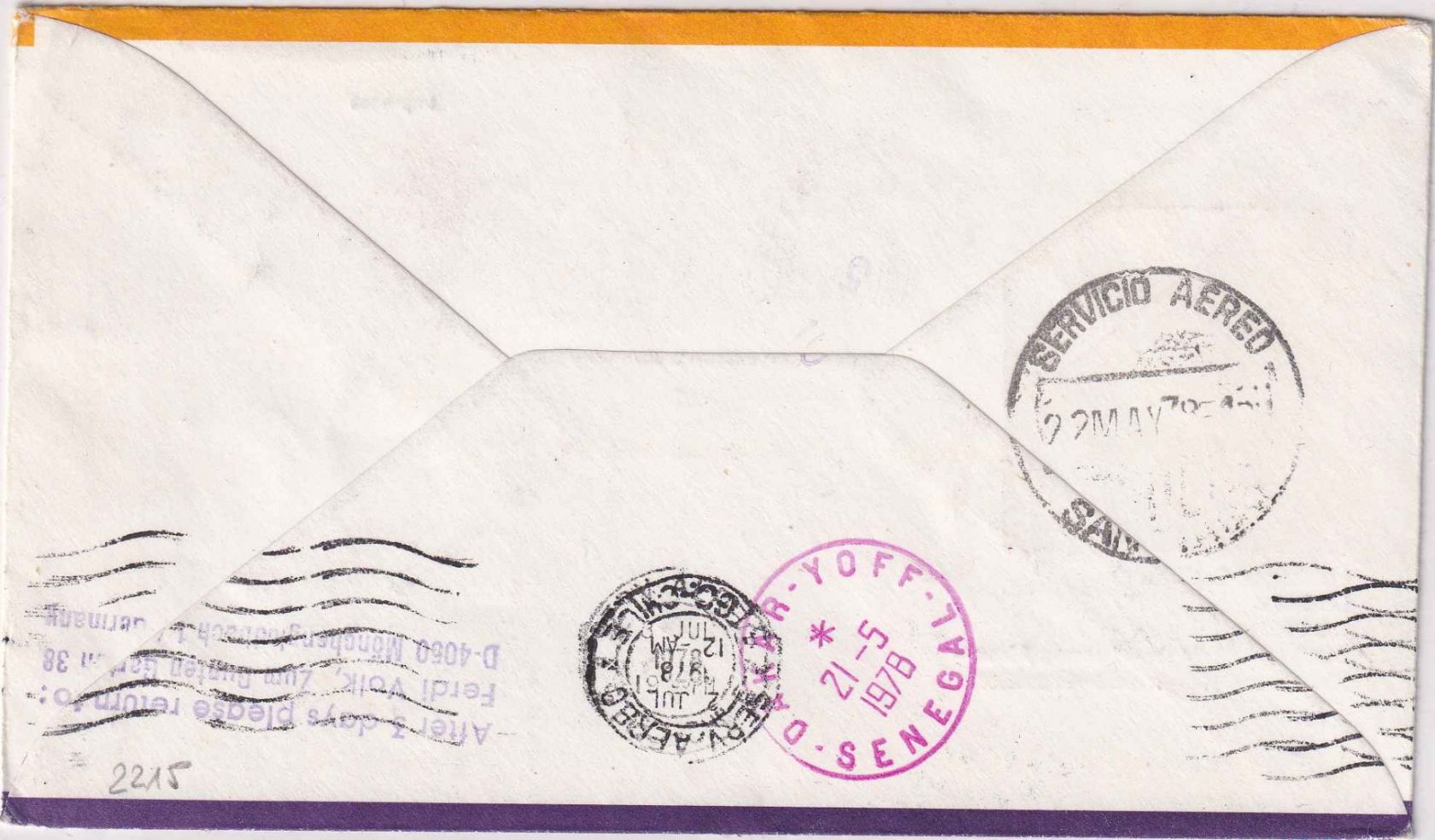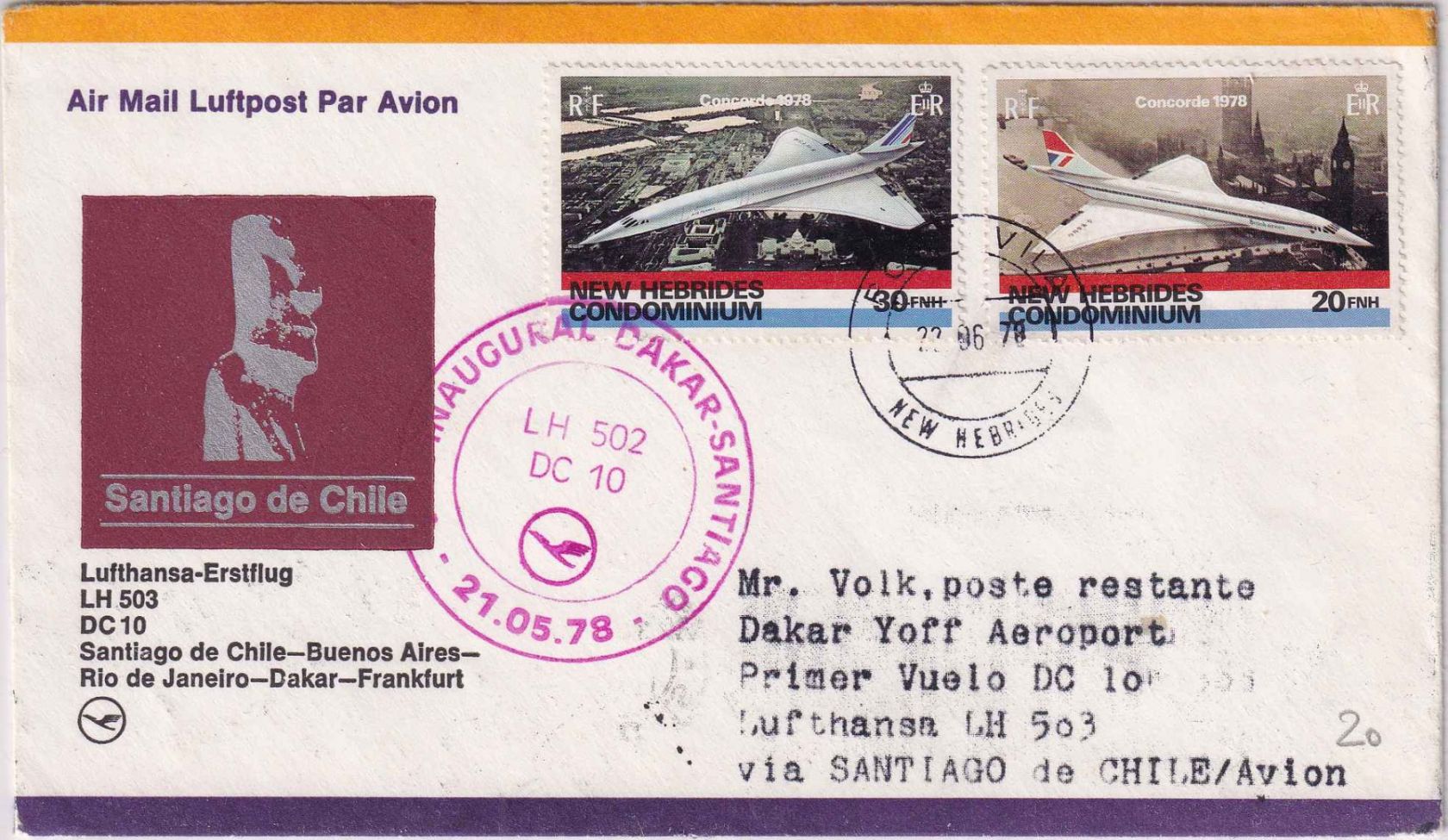 Zuleitungspost zum Lufthansa-Erstflug Santiago de Chile nach Dakar - ohne Inhalt