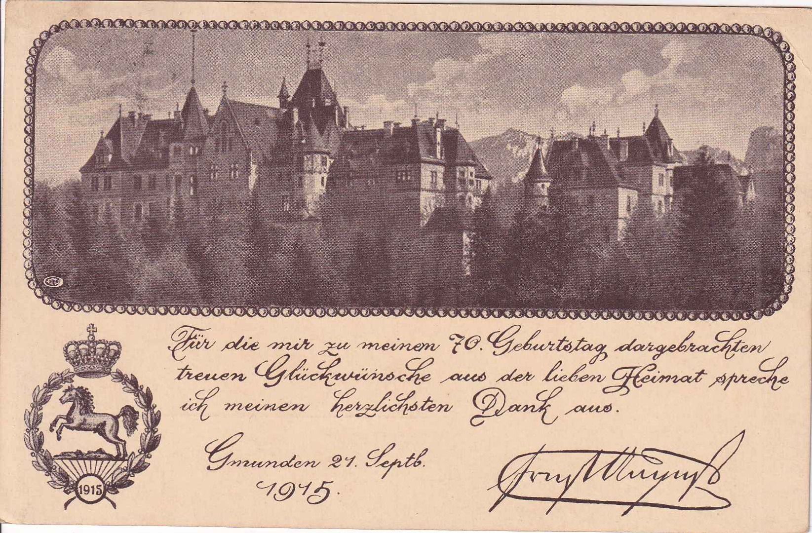 Danksagungskarte anl. des 70. Geburtstages des Herzog von Cumberland (Ernst August von Hannover)