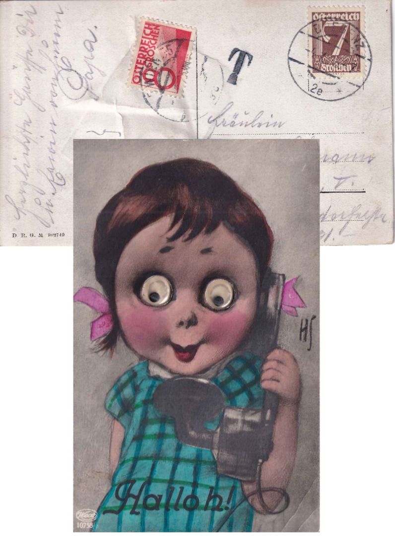 Weco-Karte (Mädchen mit Telefon und rollenden Augen)
