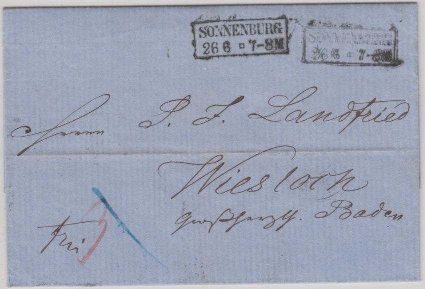 u.a. s. bad. Bahnpost-Stpl. u. Th&T Durchgangsstpl. Frankfurt - mit Inhalt - Stichwort: Bad Freienwalde