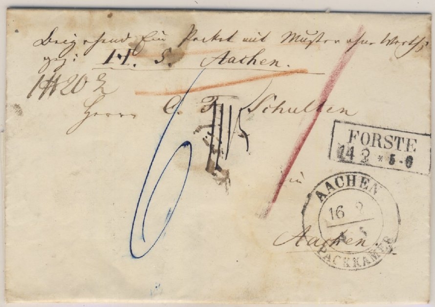 n. Aachen (Packkammer-Stempel !) - mit Inhalt - Stichwort: Sorau, Spremberg, Zasieki