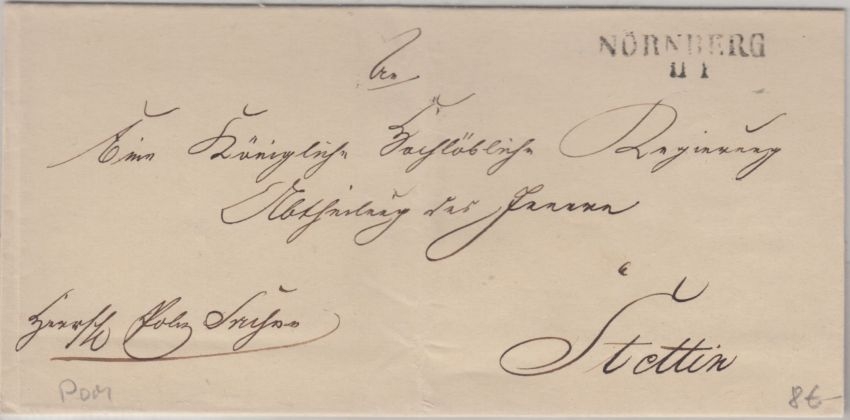 Preussen - Nörnberg (Nörenberg) 11/1 L2 Dienstbrief n. Stettin - ca. 1830