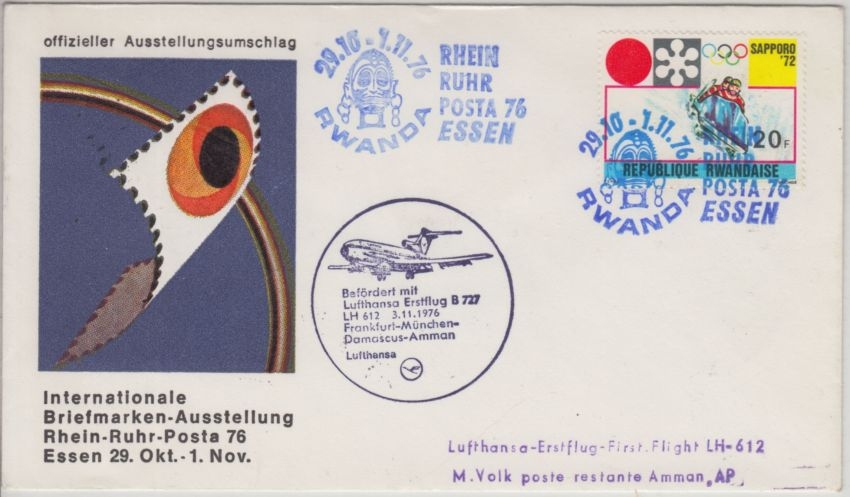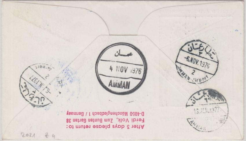 Zuleitung auf Lufthansa 1st-Flug Frankfurt - Amman 1976 - selten !!