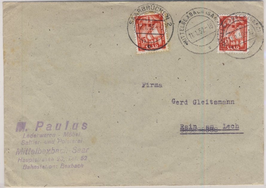 zuerst mit 1x 15 Fr. freigemacht und am nächsten Tag in Saarbrücken mit weiteren 15 Fr. nachfrankiert !! - ohne Inhalt