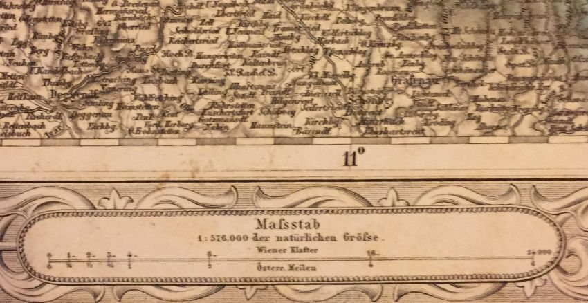 Format (aufgeklappt) ca. 56x50 cm - Maßangaben: Wiener Klafter u. österr. Meilen