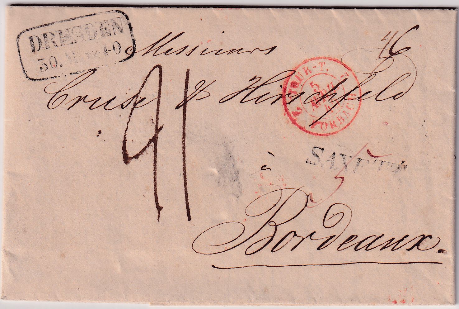 Sachsen/Frankreich - Dresden 30. Mrz 40 Ra2 Brief L1 Saxe TT n. Bordeaux