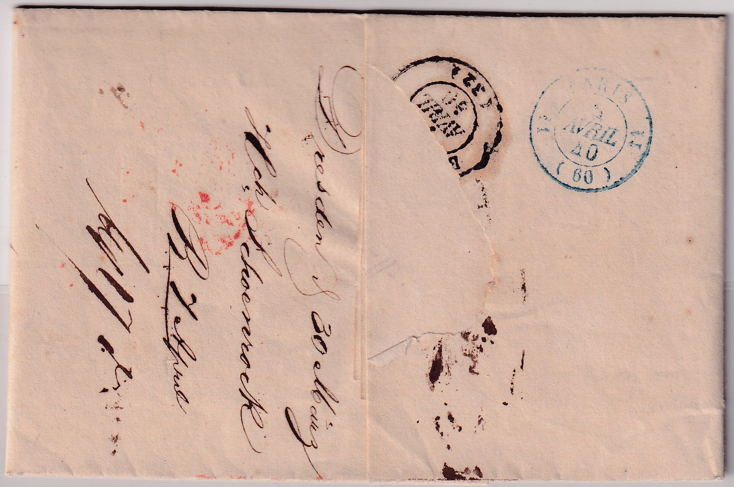 roter franz. Grenzübergangsstempel Forbach 5. April 1840 (!!) - mit Inhalt
