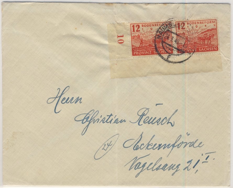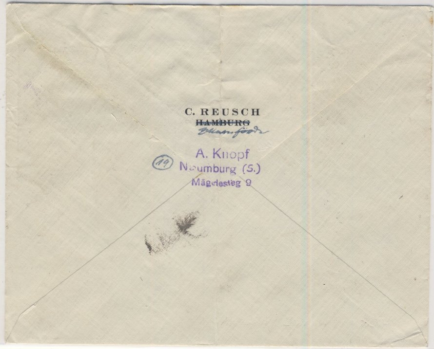 Naumburg nach Eckernförde - Kuvert senkr. Mittelbug - ohne Inhalt