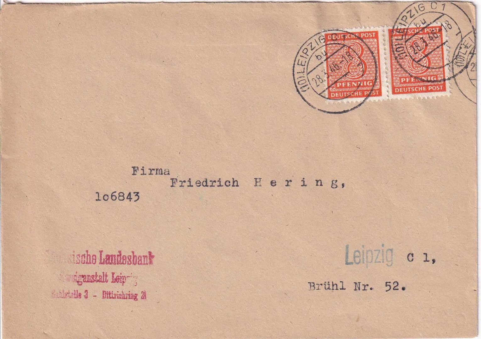 SBZ/West-Sachsen - 2x8 Pfg. Ziffer Ortsbrief Leipzig 28.3.46