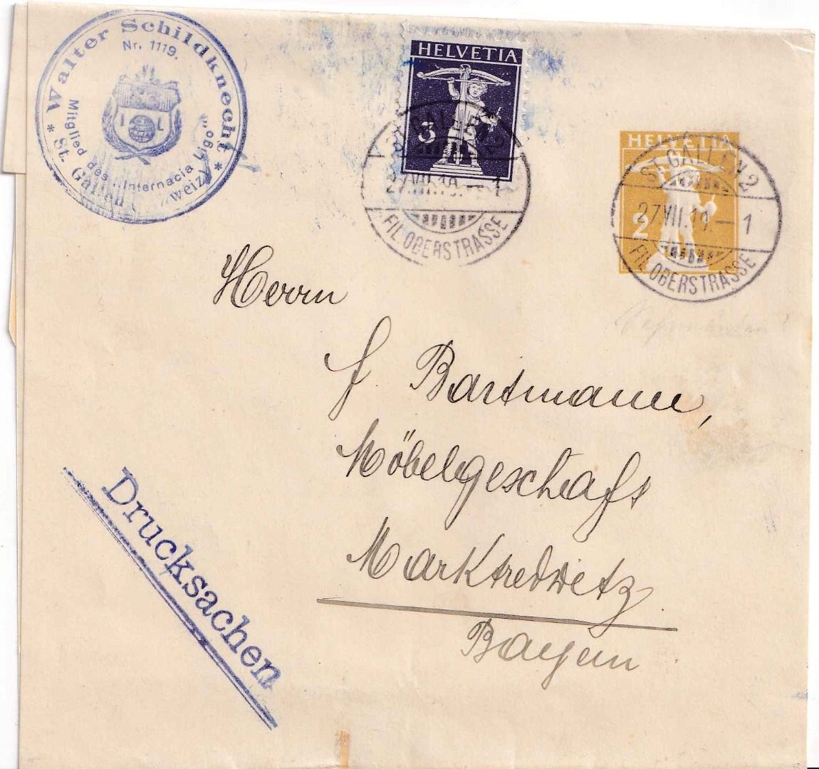 gelaufen n. Marktredwitz - rs. Vignette zur Int. Postwertzeichenausstellung Bern 1910