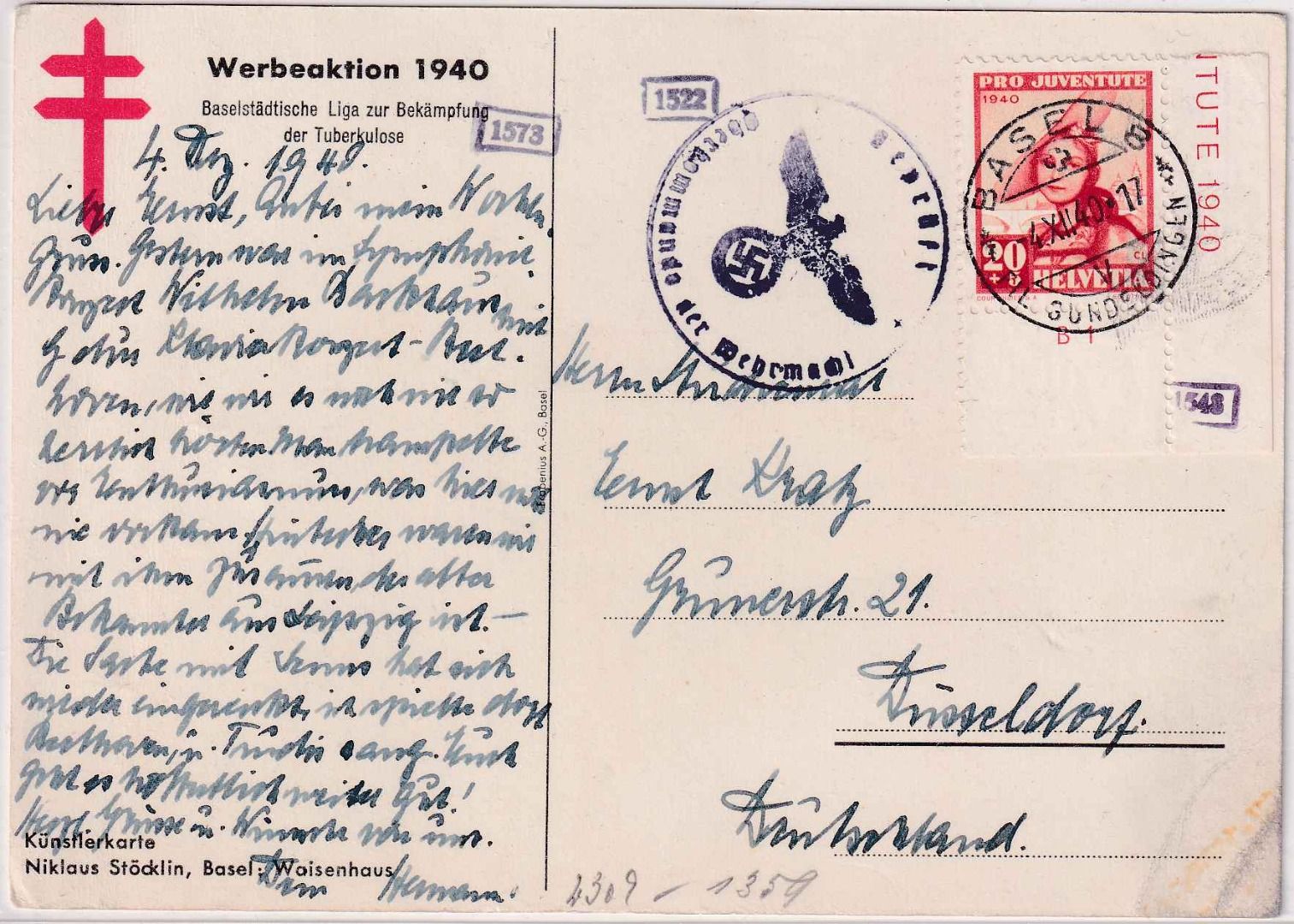 Werbekarte Tuberkulosebekämpfung - OKW-Durchlaufzensur