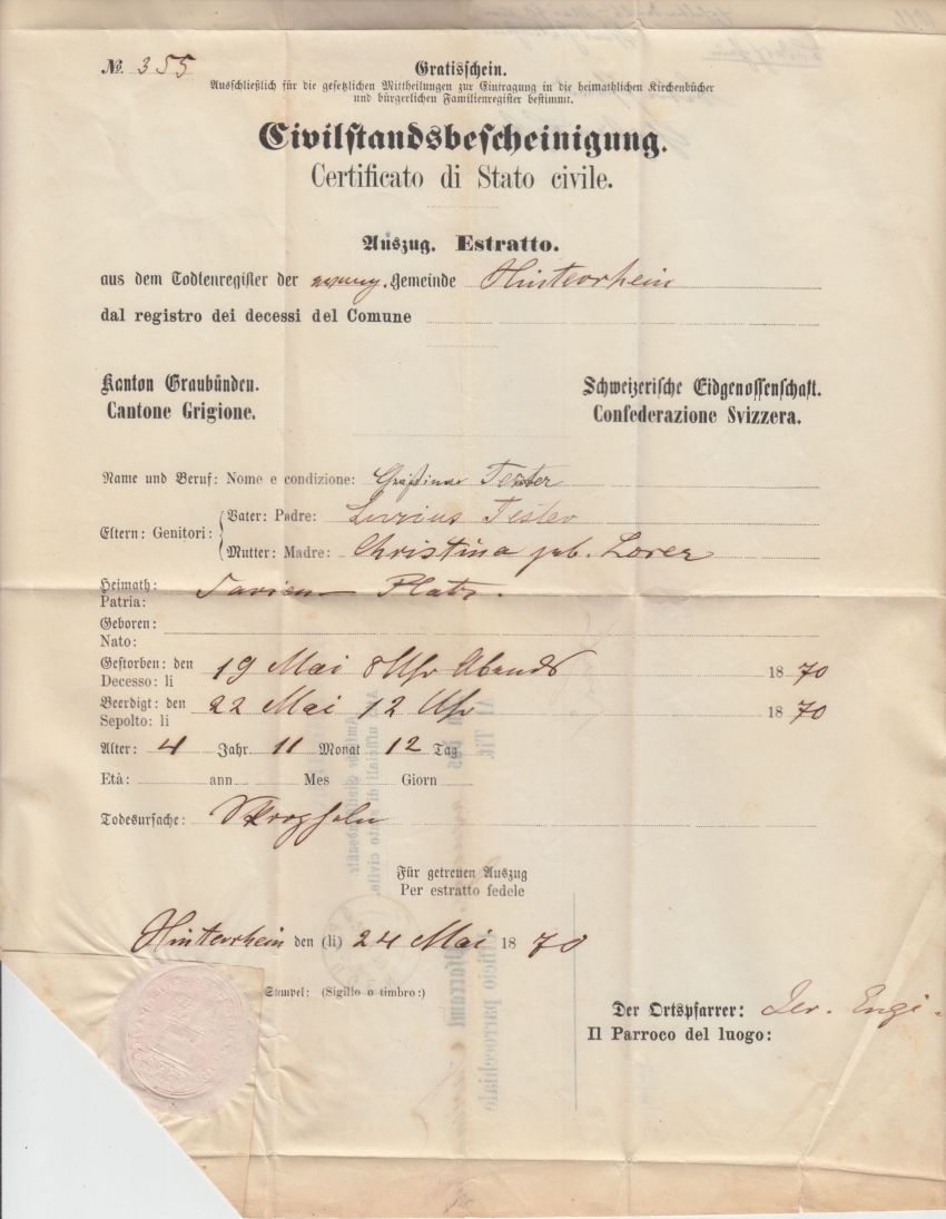 mit Inhalt (Todesanzeige/Civilstandsbescheinigung)