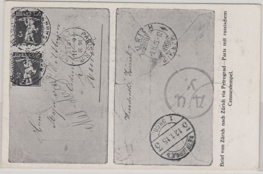 rs. Bild: Brief Zürich-Zürich russ. Zensur