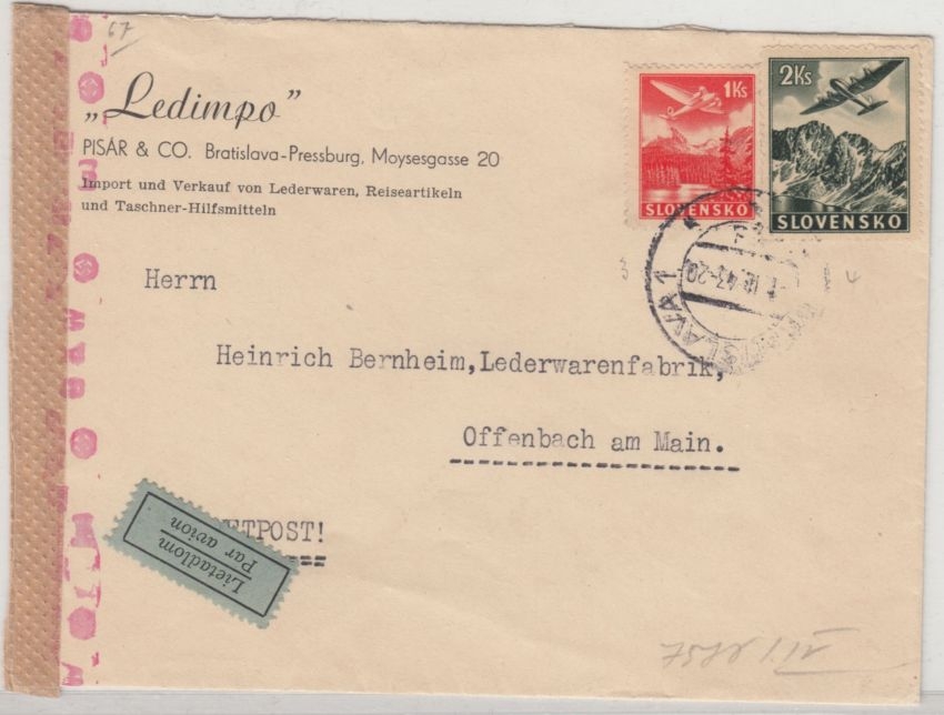 Slowakei - 2+1 Ks. Flupo-Ausg., Lupo-Zensurbrief Bratislava - Offenbach 1943