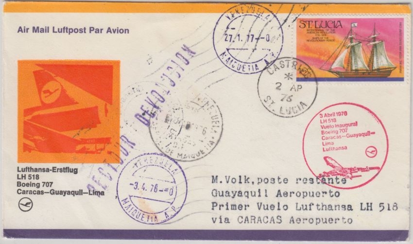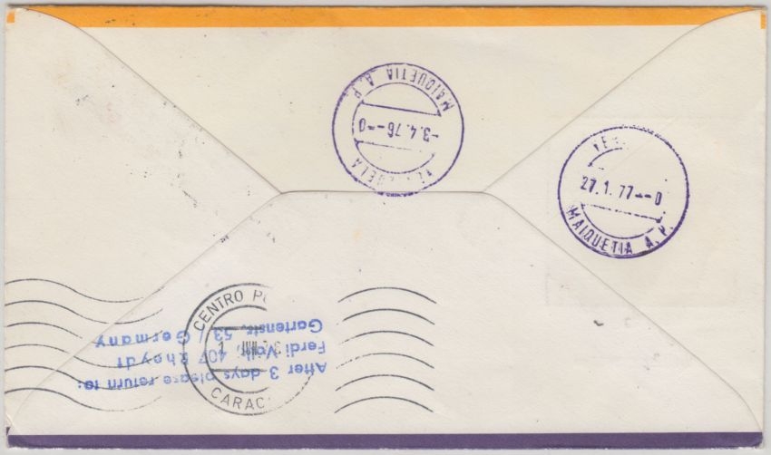 seltene Zuleitungspost zur Etappe Caracas Guayaquil - mit Sicherheit unterfrankiert, aber ohne Nachporto !