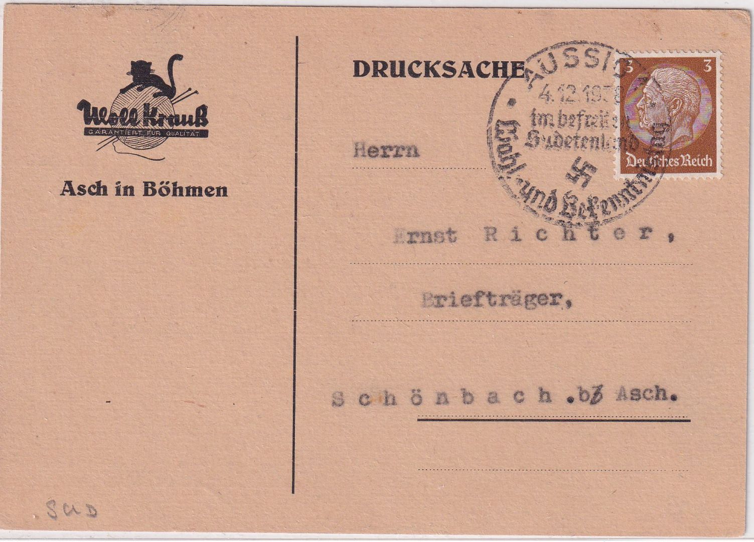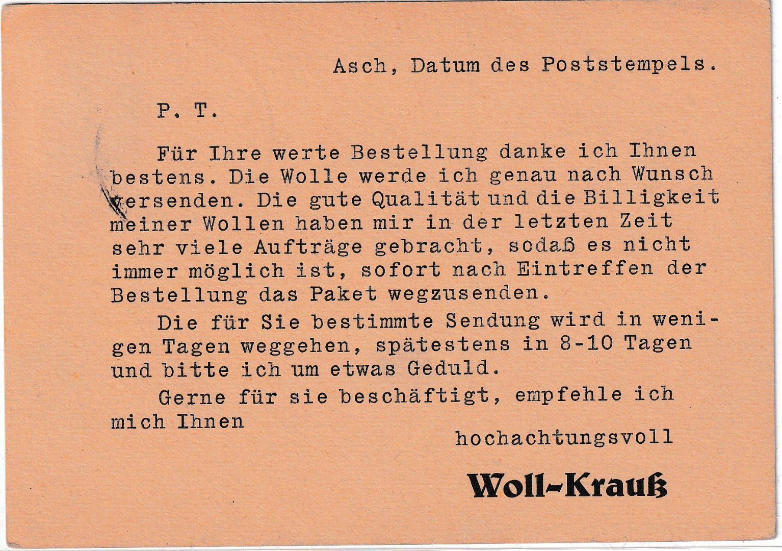 Firmenkarte Fa. Woll Kraus aus Asch in Böhmen