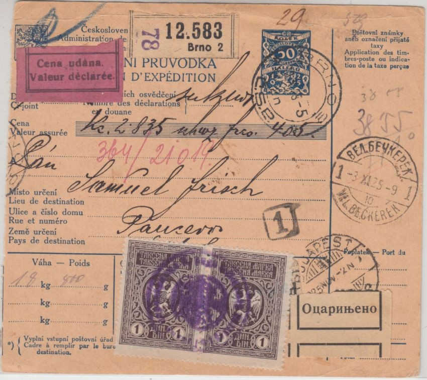 2x1 Din. Aushändigungs-/Behandlungsgebühr - Durchgangsstempel Budapest