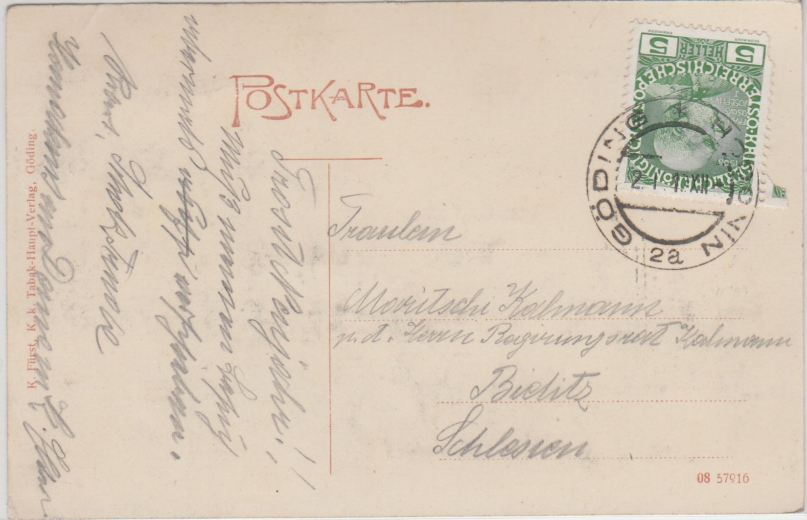 K.Fürst K.K. Tabak-Haupt-Verlag Göding - kl. Eckbugspur rechts oben
