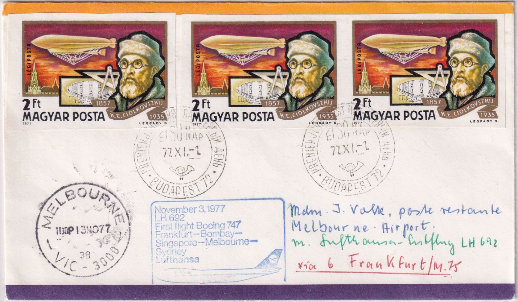 Zuleitungspost auf Lufthansa Erstflug FFM-Sydney/Etappe FFM-Melborune - ohne Inhalt