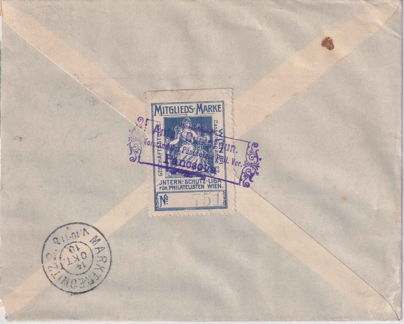 rs. Mitglieds-Vignette "Intern. Schutzliga f. Philatelisten Wien" - Kuvert rechts leicht verkürzt - ohne Inhalt