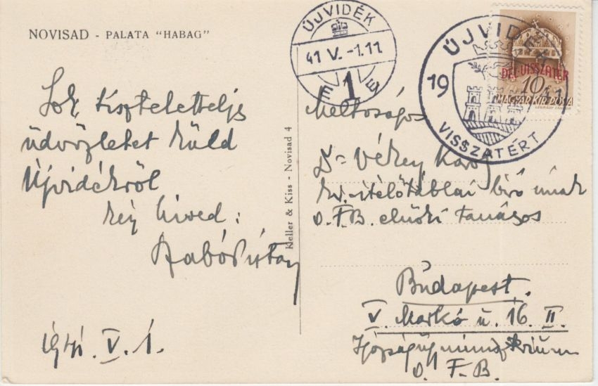 Ungarn - Ujviedk 1941 SST Ansichtskarte n. Budapest