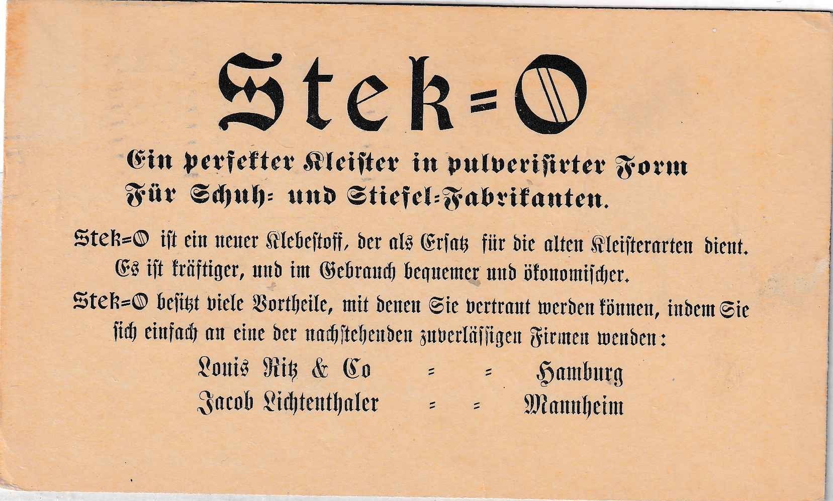 rs. Zudruck "Stek=0" (Kleister für Schuh- und Stiefel-Fabrikanten) - kleine Altersspuren