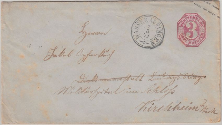 adr. an das "Militärhospital im Schloß" - ohne Inhalt - Stichwort: Aalen