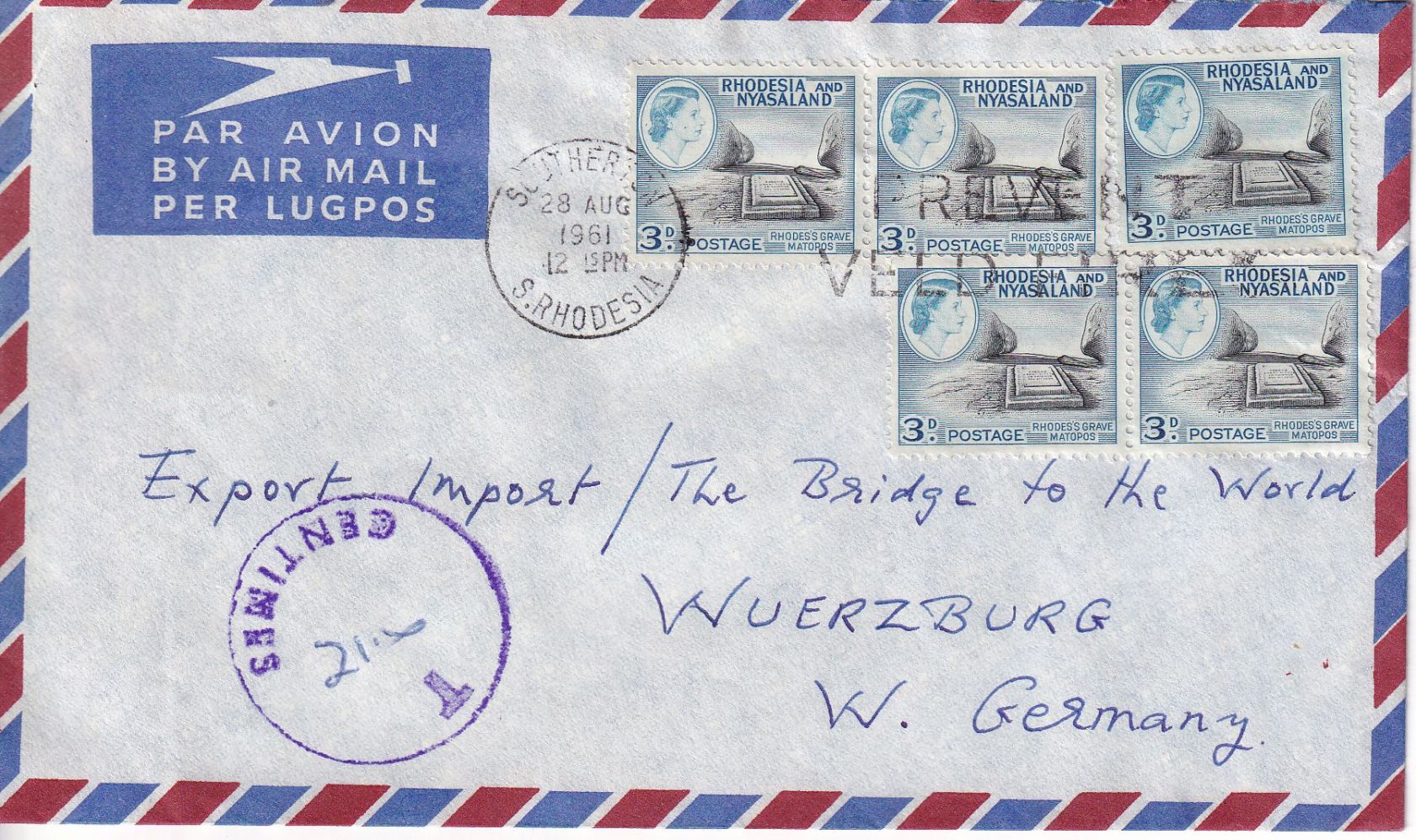 gelaufen n. Würzburg - Nachportostempel - ohne Inhalt
