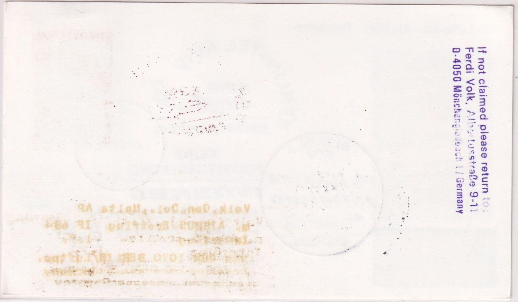 ursprünglich für 1st-Flug Berlin-Malta vorgesehen - Zurück-Vermerk 1990