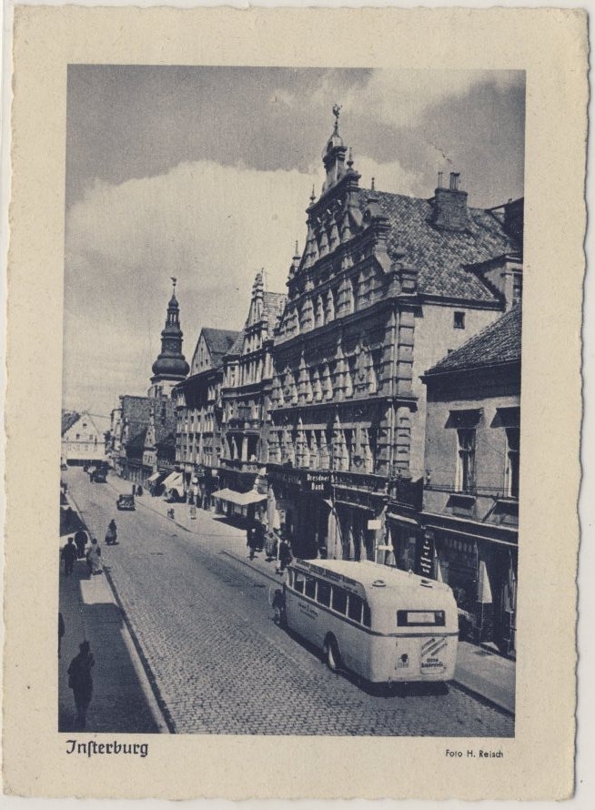 Braunschweig - rs. sw-Ansicht Insterburg (Straßenansicht m. Postomnibus)