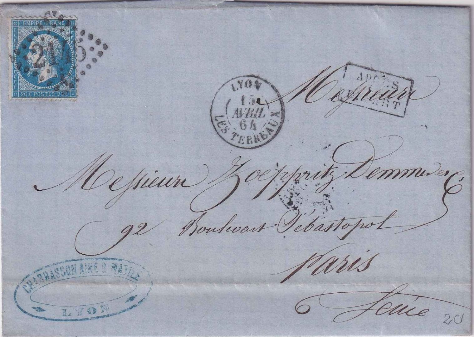 kleiner Nebenstempel "Apres le depart" (NachAbgang d. Post) - mit Inhalt