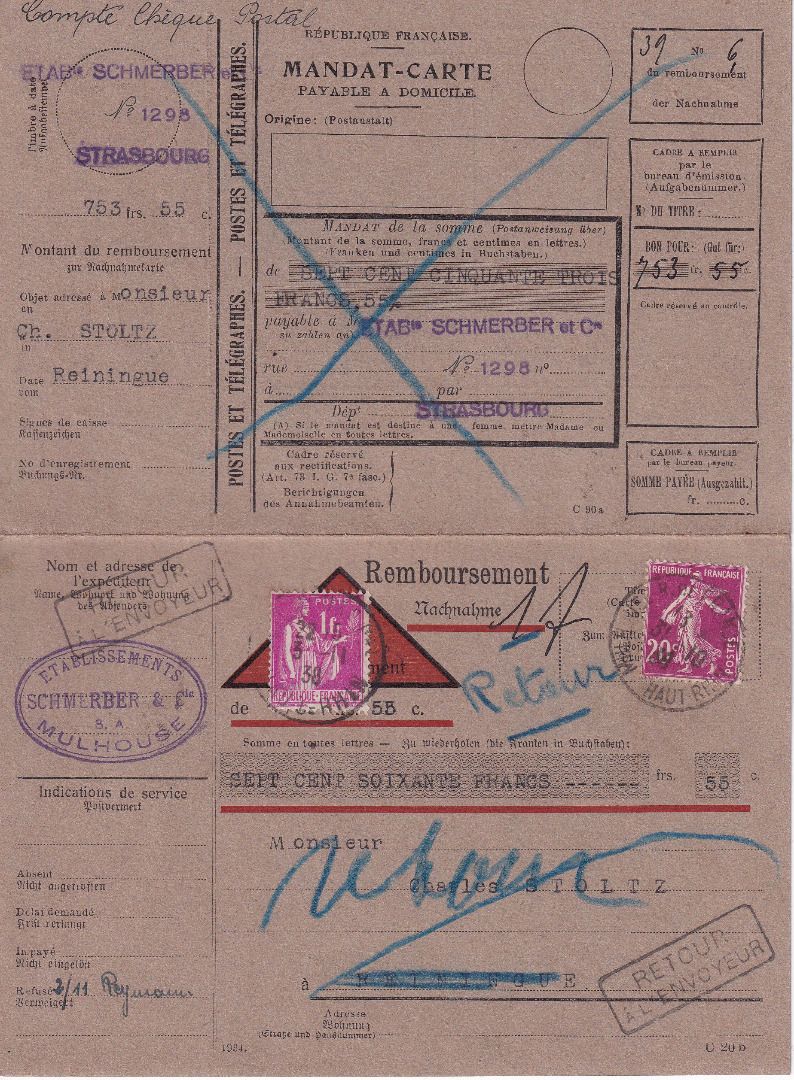 die Gebühr in Höhe von 1 Fr. wurde offenbar für die Rücksendung/Rückbearbeitung der Nachnahmekarte erhoben