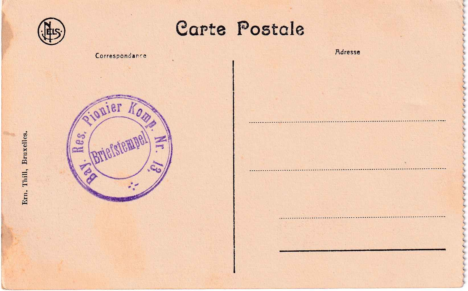 kleine Altersspuren - rs. m. Briefstempel "Bay. Res. Pionier Komp. Nr. 13"