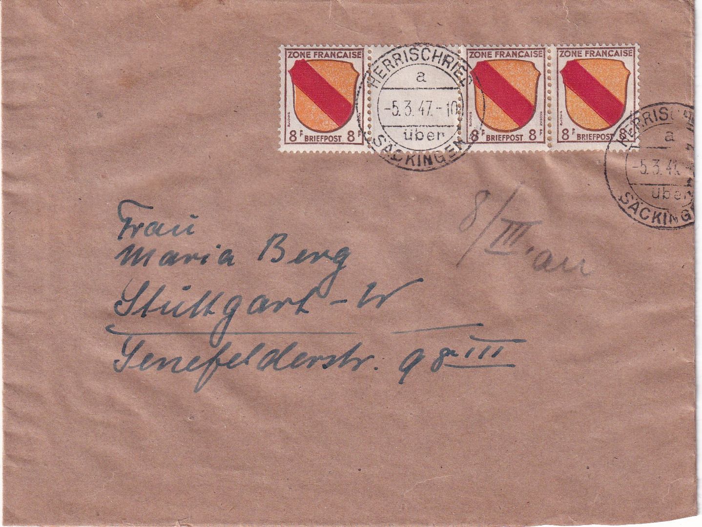 Poststelle I Herrischried ü. Säckingen - gelaufen n. Stuttgart - ohne Inhalt