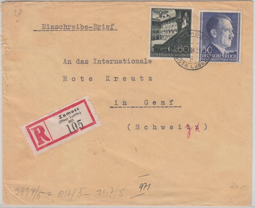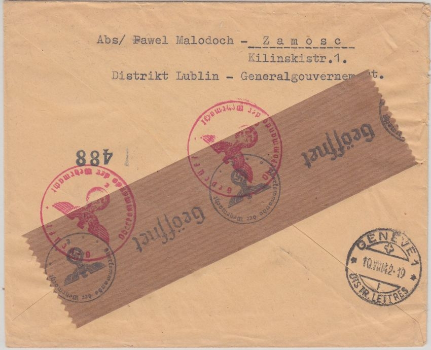 n. Genf an das Rote Kreuz - rs. OKW-Zensurverschluss - ohne Inhalt