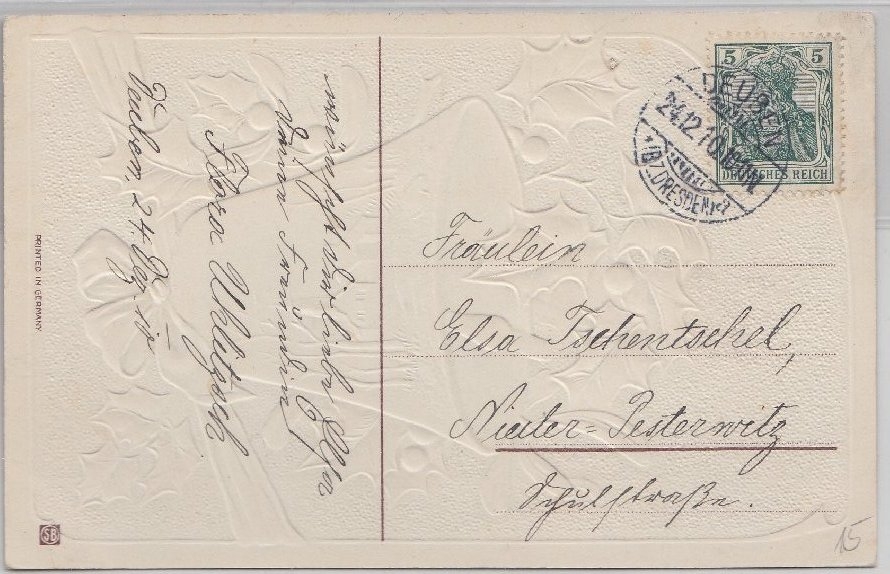 Glückwunsch Weihnachten farbige Prägekarte Deuben - Nieder-Pesterwitz 1910