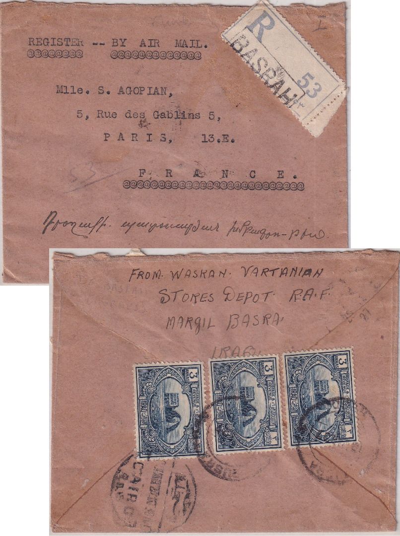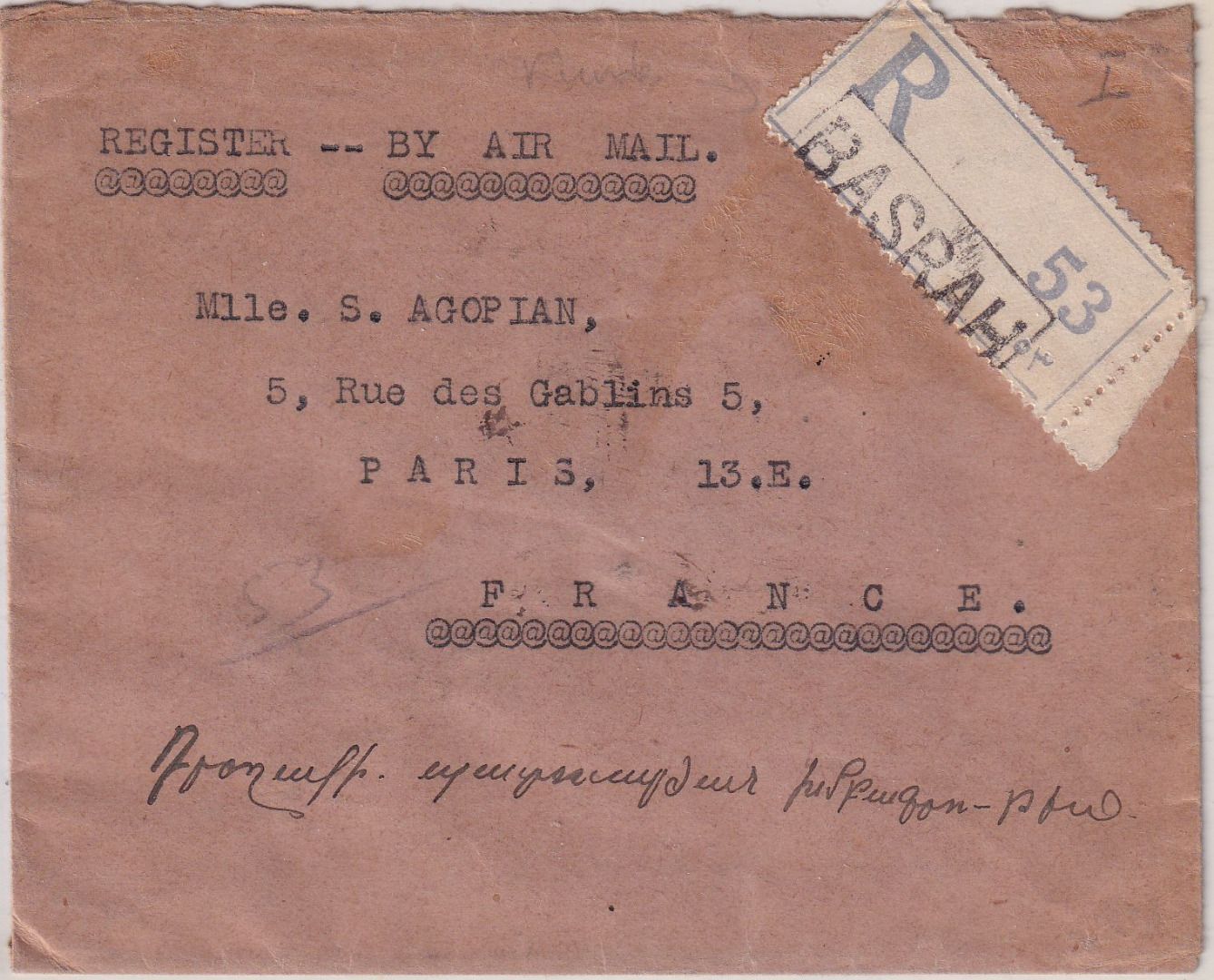 gelaufen n. Paris - rs. Durchgangsstpl. Cairo - ohne Inhalt