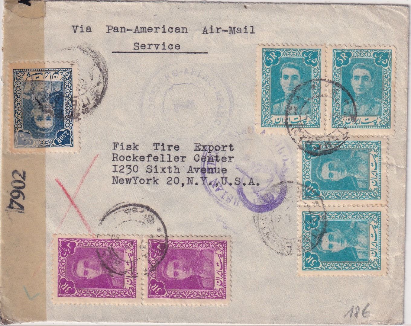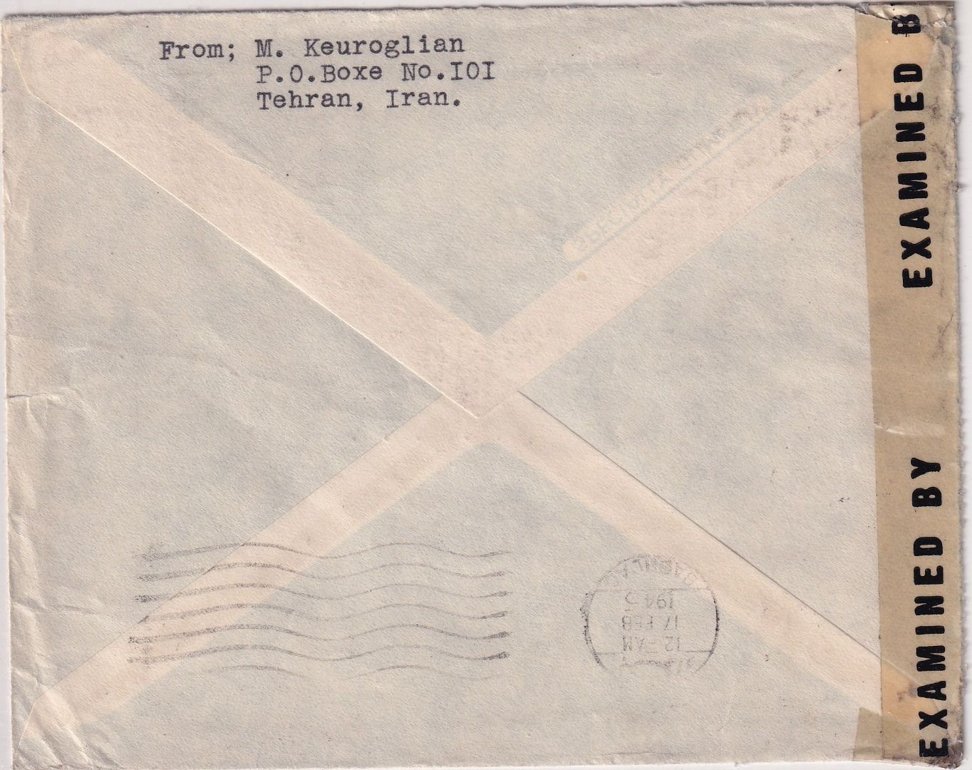 Doppelzensur: Anglo-Soviet-Persian Censorship und US-Zensur mit Verschlussstreifen - ohne Inhalt