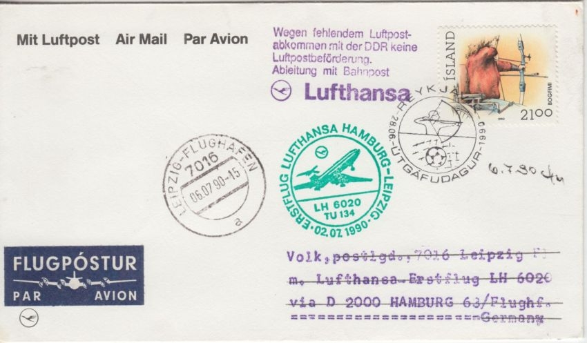 Hinweisstempel "Wegen fehlendem Luftpostabkommen....." - 1990