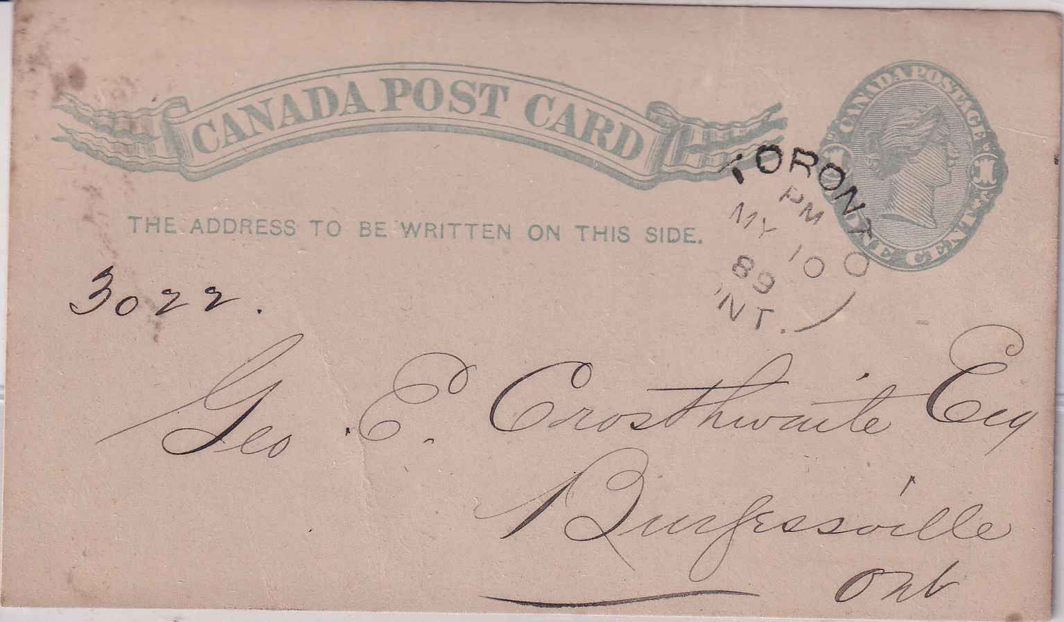 Kanada - 1 C. Ganzsachenkarte (priv. Zudruck) Toronto - Burkesville 1889