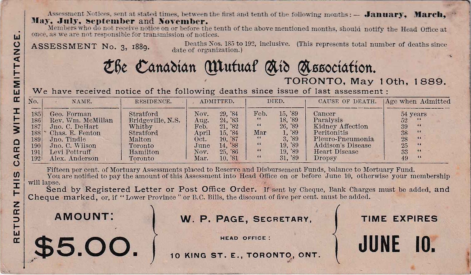 rs. Zudruck "The Canadian Mutual Aid Association" - Stichwort: Lebensversicherung