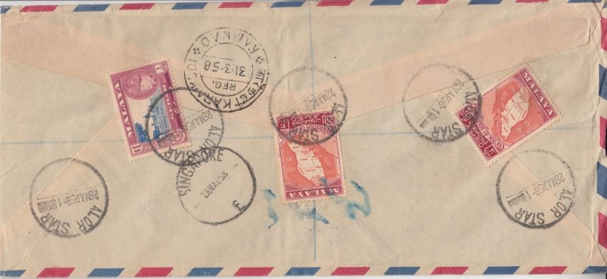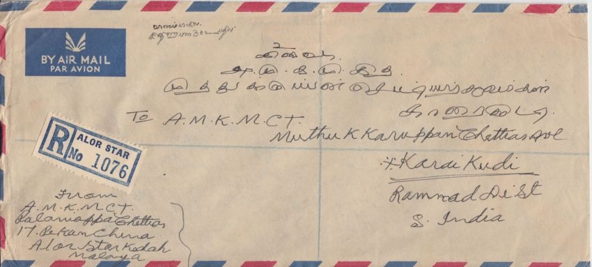 n. Karaikudi - Kuvert links minimal verkürzt - seltene Frankatur !! - ohne Inhalt