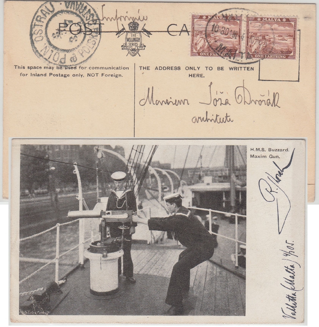 gelaufen n. Poln. Ostrau - rs. sw-Abb. HMS Buzzard - karte Eckbug rechts unten