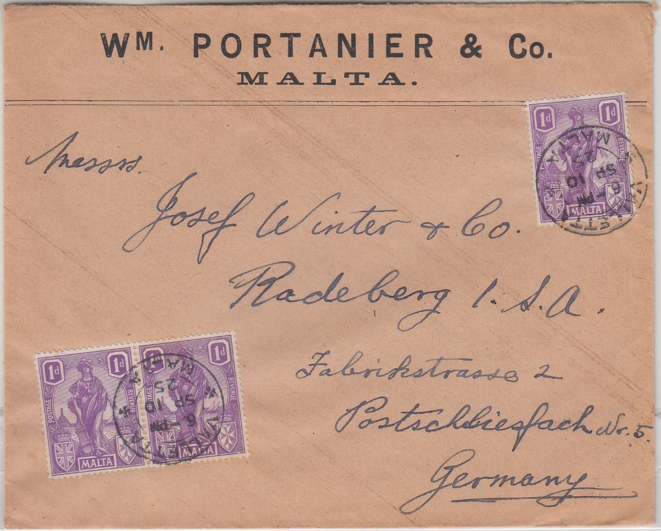 Malta - 3x1 P. Freimarke Melita Firmenbrief Valletta - Radeberg 1925